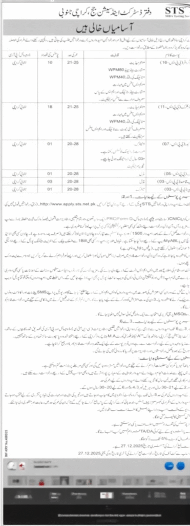 • Candidates for the first two positions can submit their applications directly online through the official STS website.https://apply.sts.net.pk/?ssid=826