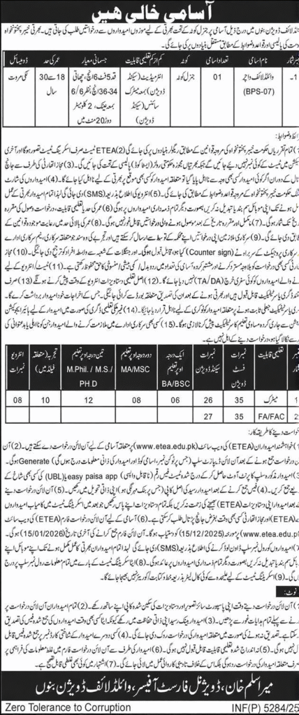 Eligible candidates from Bannu and other districts of Khyber Pakhtunkhwa can apply for these posts, as candidates are being invited for them. The Wildlife Department welcomes candidates who are physically fit, hardworking, and responsible to come forward to avail this golden opportunity for these jobs.
